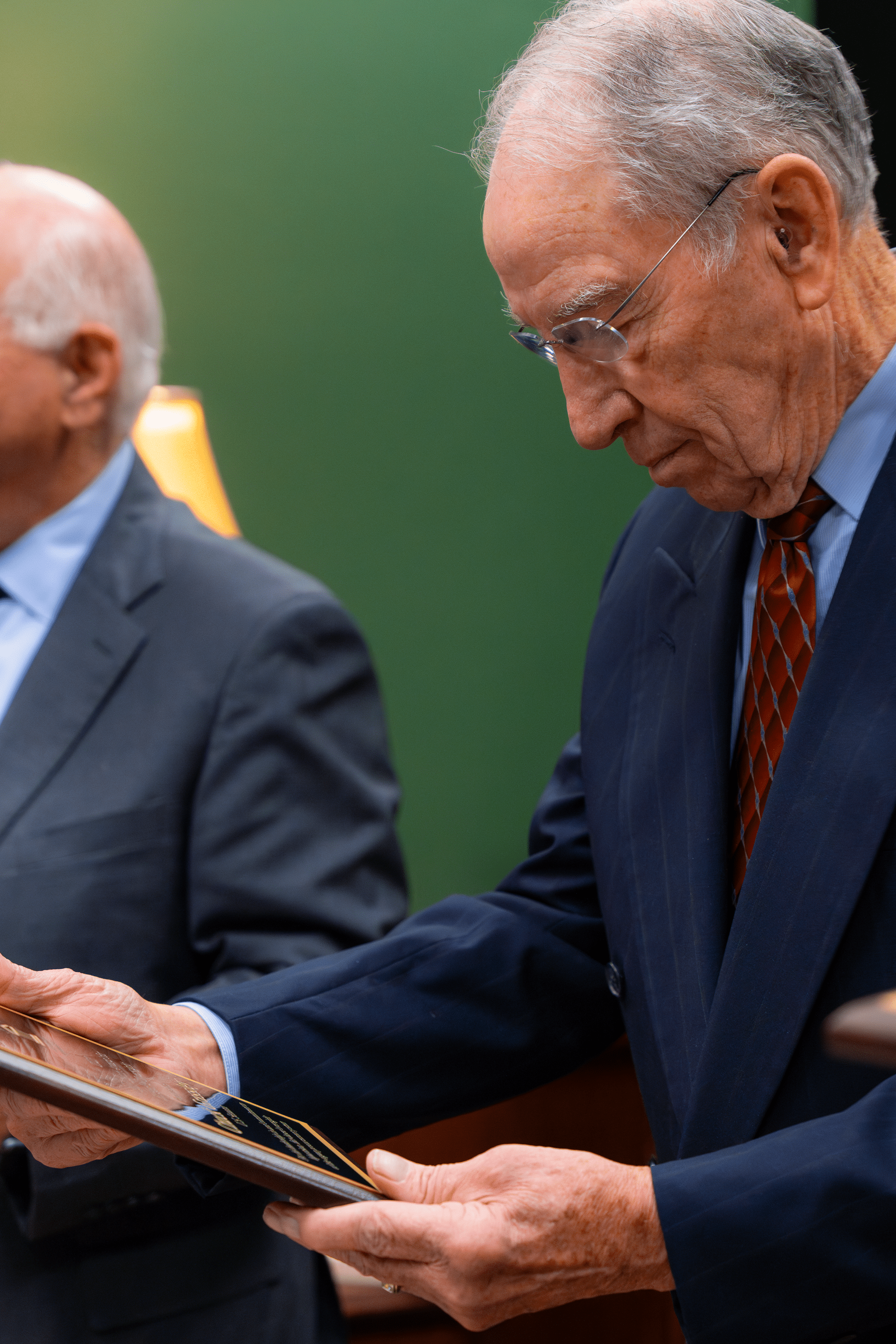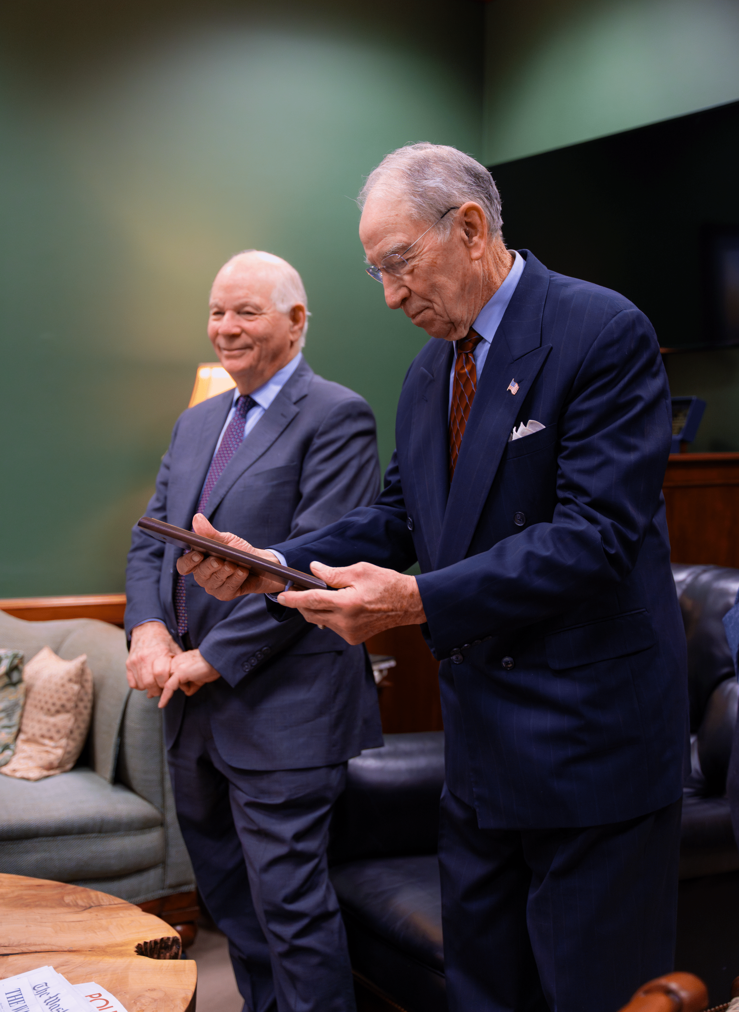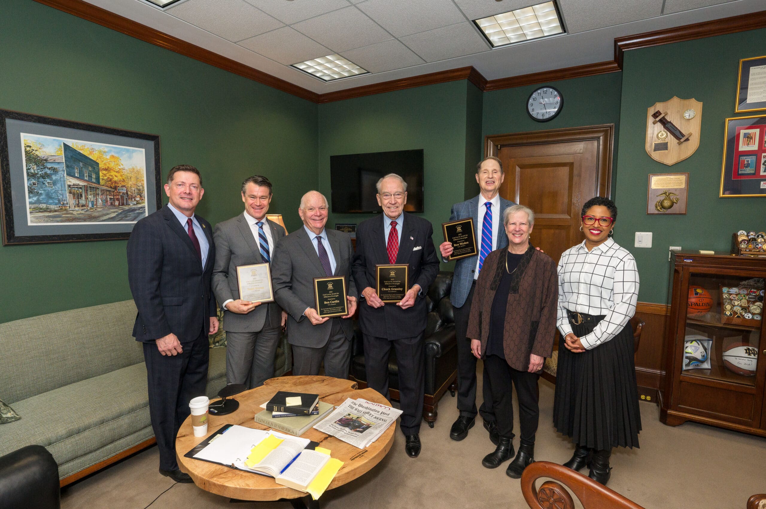 The Carl Levin Center for Oversight and Democracy at Wayne State University Law School honored Senators Chuck Grassley (R-IA), Ron Wyden (D-OR), Todd Young (R-IN), and Ben Cardin (D-MD) with the 2023 Carl Levin Award for Effective Oversight for their bipartisan, fact-based efforts over several years to investigate and improve the national organ donation program.